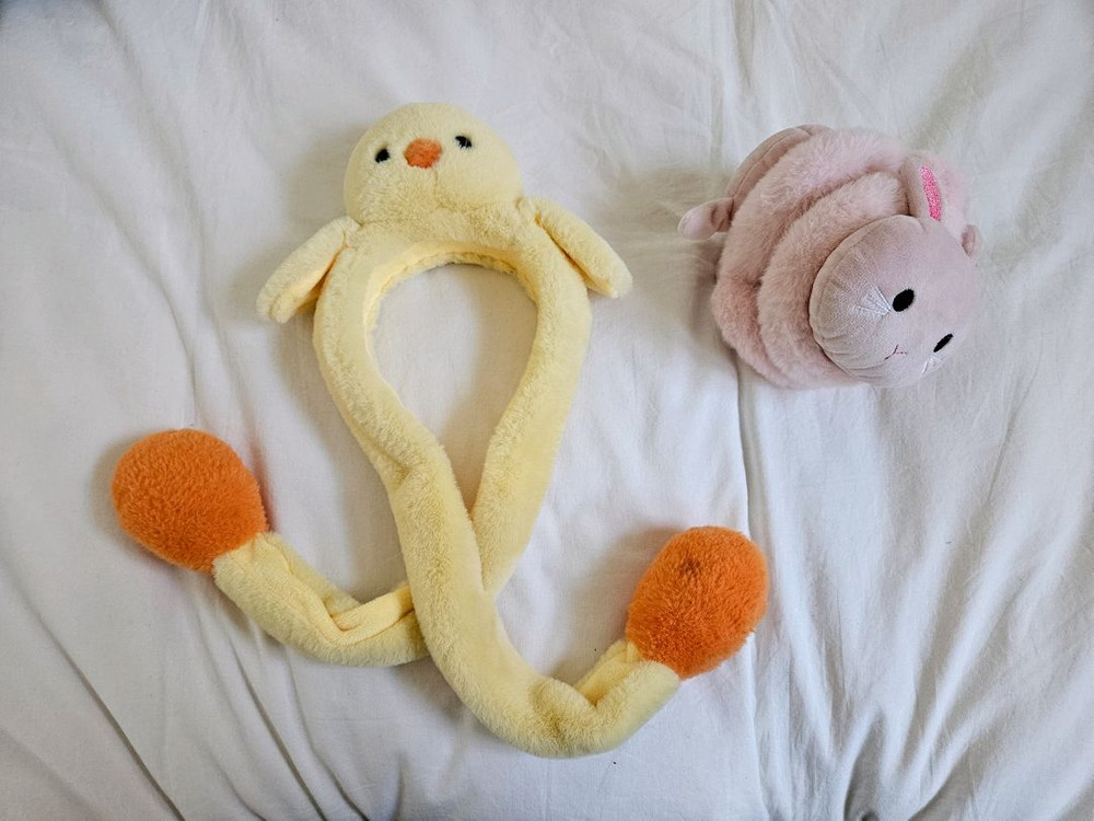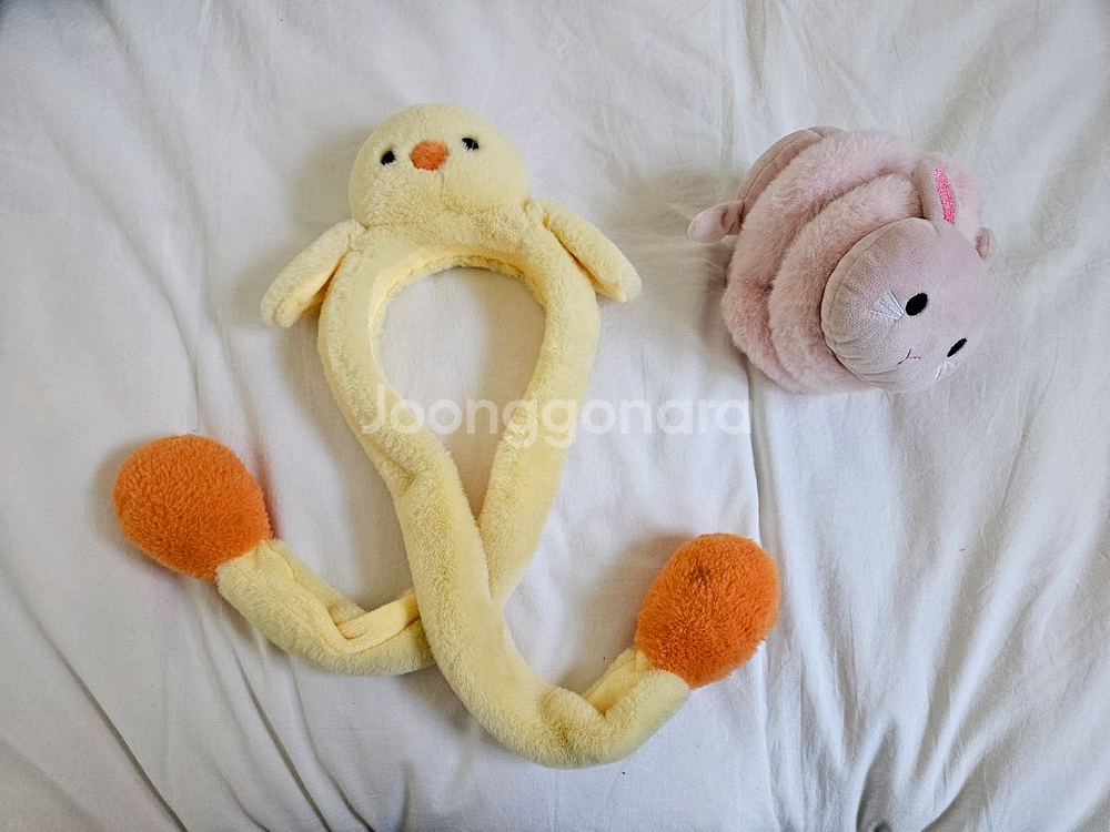 아동용 인형 머리띠와 귀마개입니다 노란색 병아리 인형 머리띠 - 보송보송한 소재. 동그란 볼을 누르면 날개가 움직여요 분홍색 토끼 귀마개 - 보송보송한 소재. 도톰하고 접기 가능해서 휴대, 보관 좋아요 병아리 머리띠 판매되어 토끼 귀마개만 5,000원으로 판매합니다! 찌름 많아서 인사만 하시면 대답 안합니다 구매 의사 및 문의사항 말씀해주세요