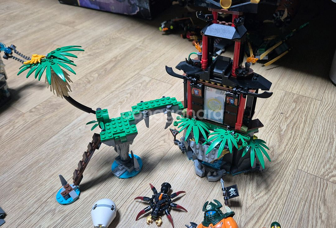 박스 설명서 없어요 정품이고 피규어 브릭 상태 좋아요 건물에 누락은 없어요 콜, 니야(와 무기) 없고, 해적깃발 없어요