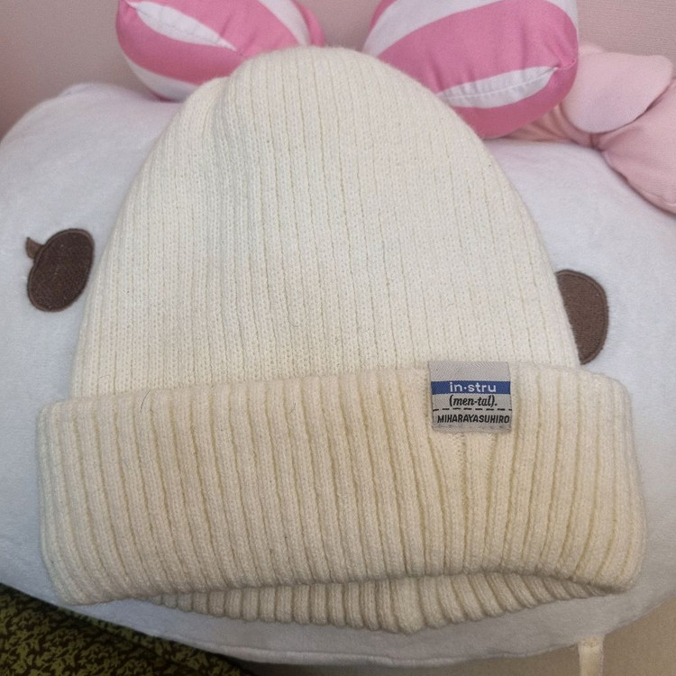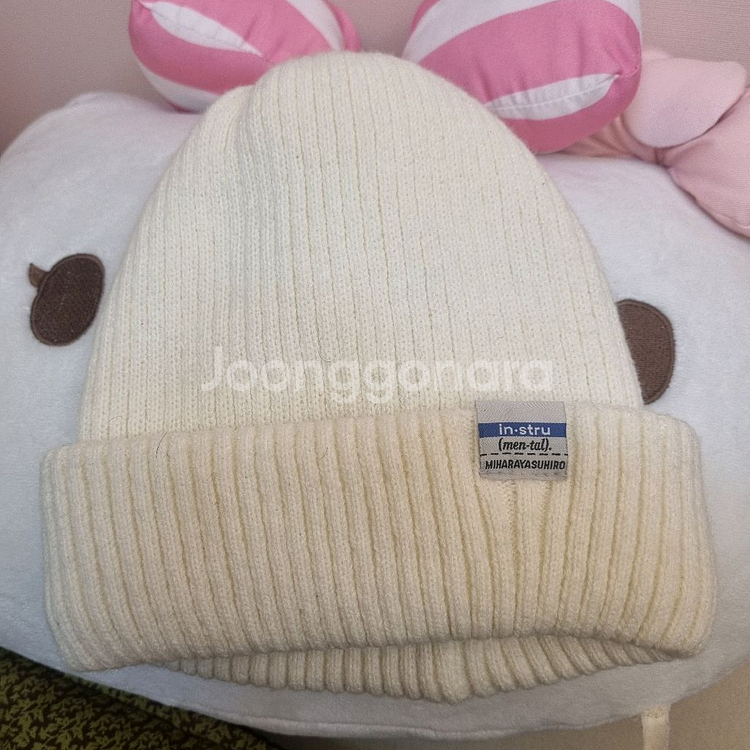 미하라 야스히로 23FW 로고 비니 아이보리색상입니다 정가 399,000원 제품 CA4LA 브랜드 태그도 함께 확인됩니다 1년전에 선물받아서 작년겨울만 몇번썻어용
