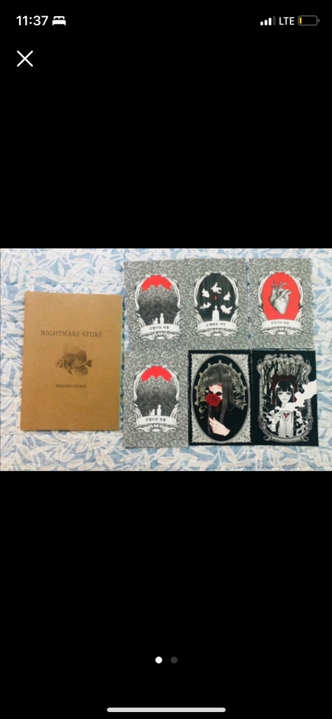 악몽상점 비하인드 스토리북과 엽서입니다 어두우면서도 상상력 가득한 만화와 일러스트에요