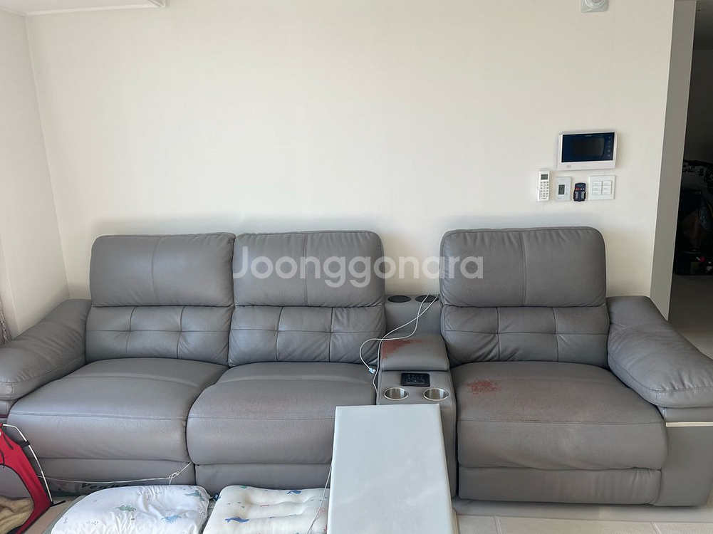3100*850*1050(mm) 대략적인 크기입니다 넉넉하게 생각하셔요 블루투스, 충전 가능하구요 리클라이너 양쪽 가능합니당 사진상 보이는 리클라이너 발 부분에 있는 투명한 덮개? 같은거 한쪽은 거슬려서 떼버렸어용 푹신하고 편해요 ~~ 가죽 사용감 있어요 커버 씌워서 사용하실 분 연락주세용 가져가는걸 도와드릴 수가 없어서 두분이서 오셔야 할 거 같습니다 용달도 알아서 부르셔야하구요~~ 위치 행신역 근처에요 엘리베이터 있음!!