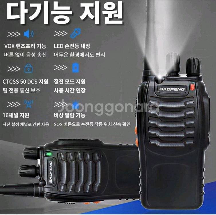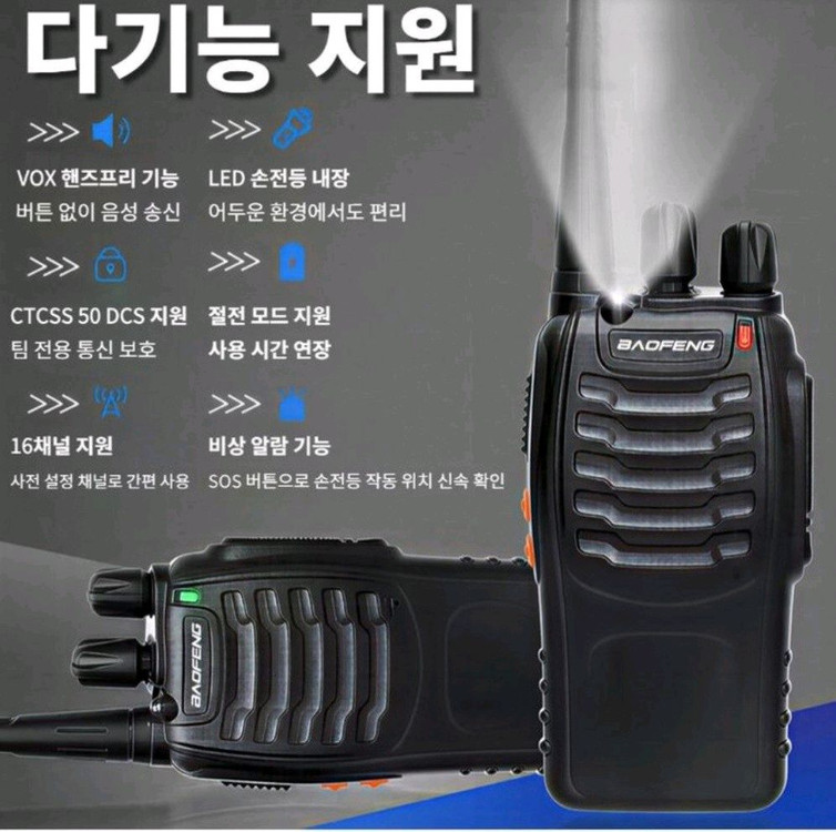 다기능 무전기예요. LED 고출력 손전등과 9단계 노이즈 감소 기능까지 있어서 야간 사용이나 비상시에도 유용해요. 새 제품 상태로 판매합니다!2개 1+1 무전기 2개 배터리 2개 산업현장용 초소형 무전기 2개 풀세트 안정통신 캠핑 등산 낚시 워키토키 새제품 산업현장에서 사용하기 좋은 무전기 풀세트입니다. LED 손전등 내장되어있어 어두운 환경에서도 사용하기 편리합니다. VOX 핸즈프리 기능 지원으로 버튼없이 음성 송신이 가능합니다. 문의 없으시면 바로 안전결제해주시면 됩니다!