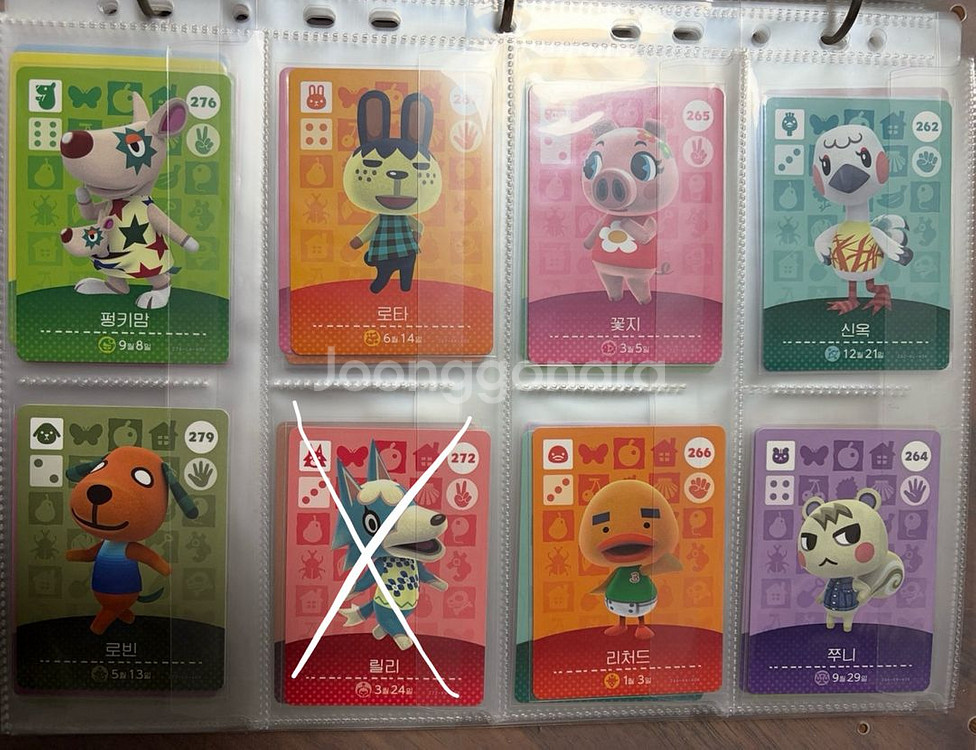 (상품 가격은 사진이 아닌 하단 설명 확인해주세요 상품 대량 누락으로 재업로드합니다..ㅠ) 동물의 숲 아미보 한국 정발판 판매합니다 단위는 모두 만원입니다 릴리 - 판매완료 리처드 - 1.9 (예약중) 쭈니 - 4.6 (예약중) 찰스 - 0.5 (예약중) 토미 - 0.4 (예약중) 부케 - 판매완료 럭키 - 0.4 산토스 - 0.3 글루민 - 1.0 (예약중) 아세.로라 - 0.5 코코아 - 1.0 (예약중) 닌토 - 0.4 (예약중) 비앙카 - 1.8 (예약중) 이요 - 0.9 (예약중) 1호 - 1.5 레이니 - 판매완료 유네찌 - 0.3 스트로베리 - 0.4 휴지 - 0.4 카라멜 - 0.7 패치 - 1.5 크리스틴 - 판매완료 프랑소와 - 1.5 메이첼 - 판매완료 서머 - 판매완료 사이다 - 판매완료 탁호 - 1.5 애플 - 3.0 (예약중) 늑태 - 0.3 럭키 - 0.4 잭슨 - 판매완료 차둘 - 0.6 미애 - 0.7 리카 - 0.3 요비 - 판매완료 미첼 - 판매완료 스피카 - 판매완료 다람 - 판매완료 그외 각 0.1씩 (빙수, 보스터 판매완료) 사진에 없는 NPC 카드 각 0.08씩 (구매시 문의 따로 주세요) 전부 하자 없이 개봉후 바로 OPP 및 홀더 보관했습니다 0.5 이상부터 거래하며 배송비 별도입니다