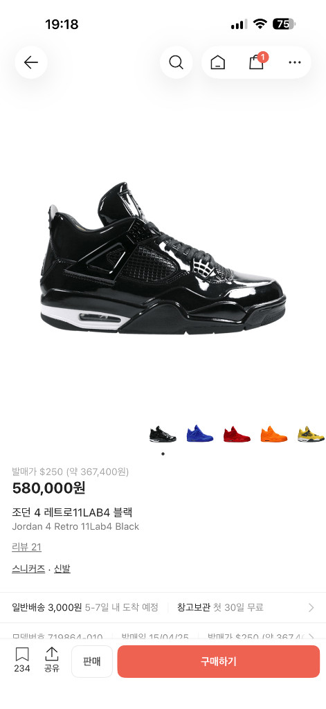 조던11lab4 250 조던4 다스베이더 판매