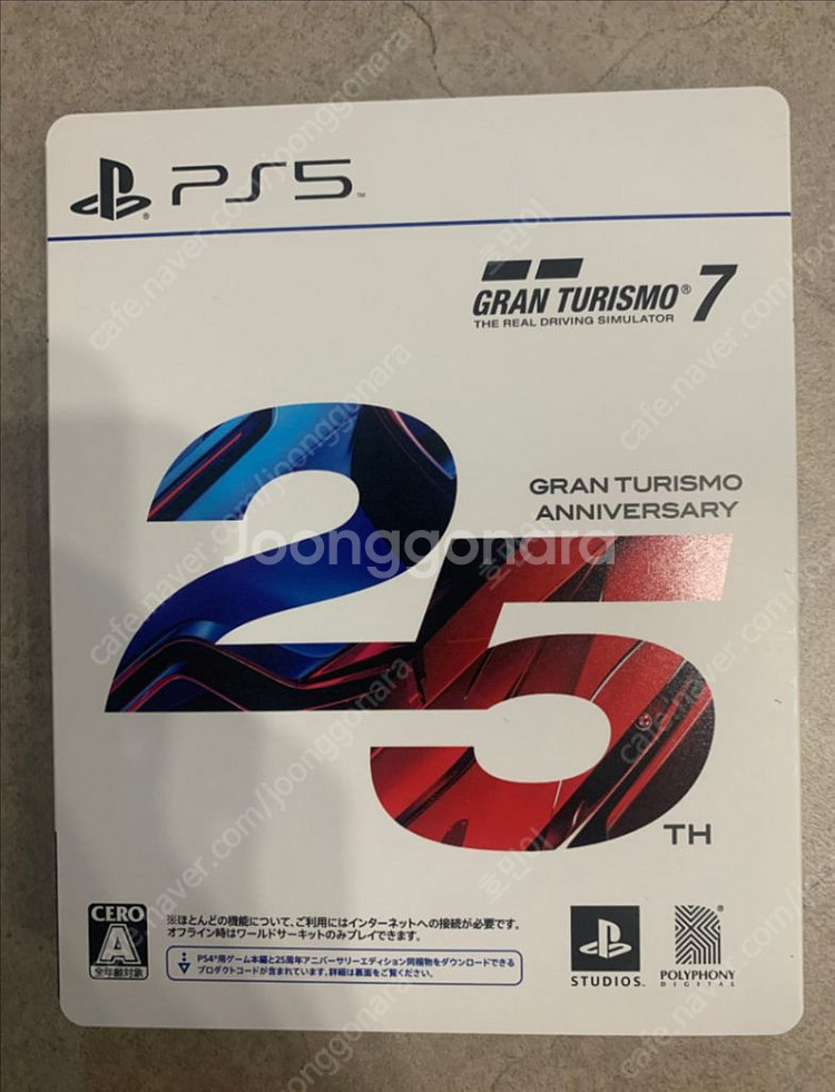 개인정보(거래정보)를 주고받는 행위는 사기에 노출될 수 있으므로 즉시 중고나라로 신고해 주세요PS5) 그란투리스모7 일판 25주년 에디션입니다. 코드사용X 스틸북만 약간의 생활기스 있습니다. 일판이라 한글은 안됩니다. 직거래시 석수역 택배거래시 4천원 추가입니다.