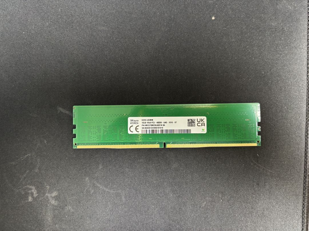 SK하이닉스 DDR5-4800 16GB (M다이) • 파트넘버: HMCG78MEBUA081N • 제조주차: 22년 28주차 • 상태: 정상 작동 확인 (CPU-Z 인증 완료) • 특징: 호환성과 안정성이 뛰어난 M다이 모델입니다. 순정 상태로 사용하시거나 약간의 오버클럭을 원하시는 분들에게 적합합니다. 직거래 우선이고, 파손면책동의시 택배거래 가능합니다(+5,000원)