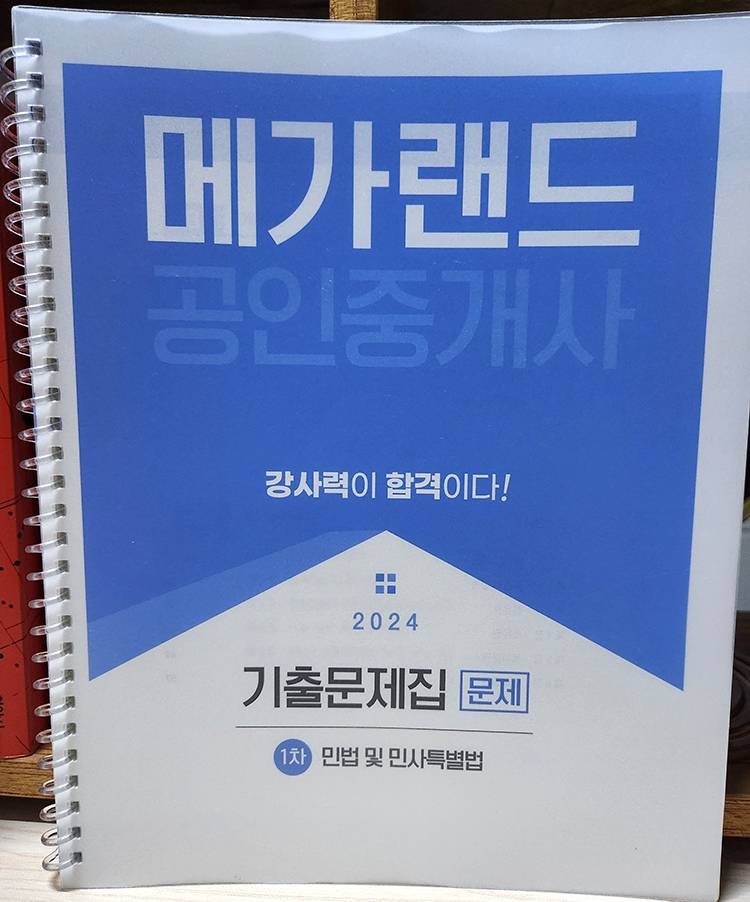 공인중개사, 1차 2024년 기출문제집, 메가랜드 교재 -민법 -부동산학개론 스프링으로 분철되있어, 공부하기 편합니다~