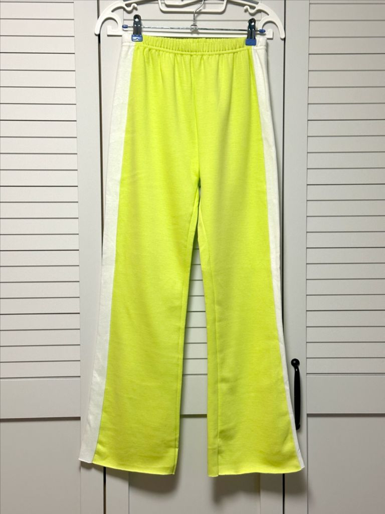 🥳 새상품 : 고퀄제품 도매가 이하로 판매해요. 😇 중고상품 : 상태 좋은 제품만 판매해요. 🔐 안전결제로만 거래해요. 택배비 별도예요. 📦 꼼꼼하게 포장해서 우체국택배로 보내 드려요. 🚚 우체국택배가 접수하면 보통 다음날 도착해서 좋아요. 👔 제품포장부터 택배접수까지 사진 공유해 드려요. 💝 교환, 반품, 환불은 안 되니 신중구매해 주세요. 📱 핸드폰 화면마다 색감 차이가 있을 수 있어요. 👀 사진 꼼꼼히 확인하고 더 궁금한 점 질문해 주세요. 가격은 고정이에요. 수량 있을 때~ 사이즈 맞으면 득템해서 예쁘게 입으세요~ 🤗 허단 30cm 늘리면 45cm 총장 93cm 엉덩이단 47cm 허벅지단 24cm 발목단 23cm 44-55 사이즈가 입거나 아이들 입히면 예뻐요. 재는 위치에 따라서 사이즈 차이가 있을 수 있지만 평소에 자주 입는 옷 사이즈랑 비교해 보고 구매하시면 사이즈 실패 확률이 적을 거예요. 😉 부드러운 기모 안감으로 되어 있어서 따뜻하게 입을 수 있는 형광 연두색 트레이닝 팬츠예요. 실물 컬러감이 더 화사하고 예뻐요! 밑단은 데끼 스타일로 되어 있어요. 옆에 흰색 라인이 들어가서 다리도 길어 보이고 형광 연두색이랑 배색이 예뻐요. 국내제작이라 퀄 좋고 원단 신축성 좋아서 편해요.