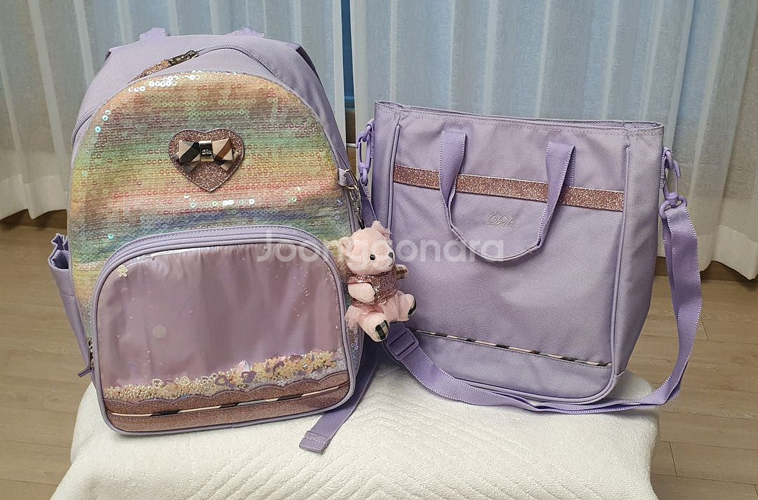 건강한 외동아이가 깨끗하게 사용한 닥스 키즈 스팽글 책가방 세트 라벤더 색상입니다. 구매당시 17만원 가까이 주고 구매하였습니다. 반짝이는 스팽글 디자인과 귀여운 곰돌이 키링이 포인트로 초저학년 여자 아이들이 정말 좋아할 디자인입니다. 등판은 에어메쉬 소재로 되어있어 통기성이 좋고, 어깨끈 조절이 가능해서 아이 체형에 맞게 편안하게 멜 수 있습니다. 신발주머니도 함께 구성되어 실용적입니다. 세탁해놓은 상태로 바로 착용가능합니다. 아이가 사용했던 중고 상품이니 새것같은 컨디션 찾으시는분은 패쓰 바랍니다.