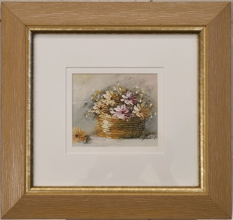 따뜻한 느낌의 꽃 바구니 유화 그림 액자입니다 액자 사이즈 37cm X 35cm 그림 사이즈 13.5cm X 11.5cm 인테리어 소품으로 활용하기 좋아요 그림과 나무 프레임 모두 깨끗하고 완벽한 상태입니다
