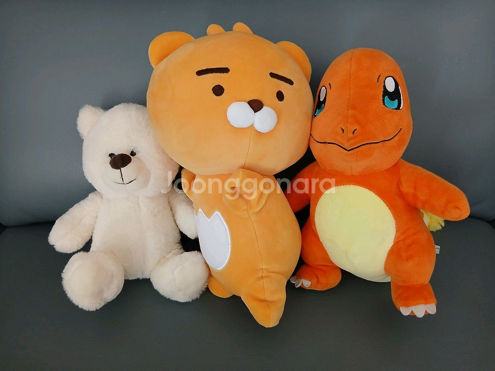 아이들이 좋아하는 흰곰, 라이언, 파이리 인형 3개 한 번에 가져가세요! 높이는 라이언기준 약 30센티. 세탁완료해놈 개별구매는 각각 8000원 필요하신분 연락주세요