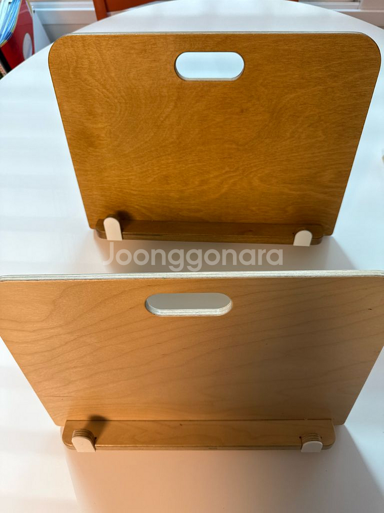 한때 인스타에서 프리오더로만 구매 가능했던 자작나무 독서대 입니다. 아빠가 딸아이 위해 만든 제품이라 그런지 그림책이 넘어가지 않게 양쪽 다른 높이와 내구성 무척 좋았습니다. 도서관이랑 이동시 접을 수 있는 편리성까지 더해졌어요. 꼬메모이 독서대 부터 아크릴 회전 독서대 까지 독서대가 곳곳에 있던터라 사용감 많이 않고 컨디션 매우 좋습니다. 구매 하실 분만 채팅 부탁드립니다. 어두운 컬러 1 밝은 컬러 1 각 가격 25000원입니다. 가로 40 세로 27
