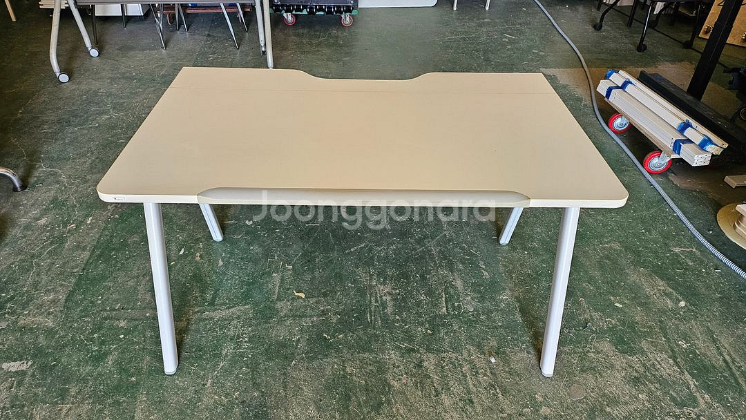깔끔한 베이지 컬러의 접이식 책상이에요. 사용감은 있지만 기능적으로는 문제없고, 공간 활용도가 좋습니다. 실용적인 디자인으로 어떤 인테리어에도 잘 어울려요.
