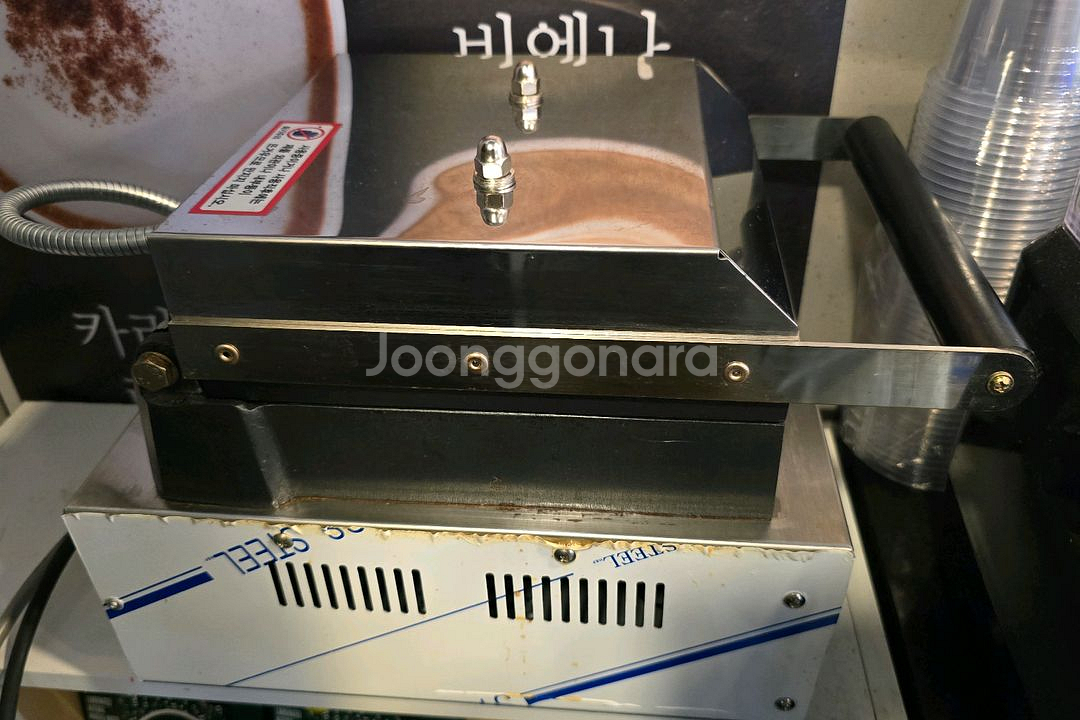 카페나 베이커리에서 사용하던 업소용 와플기계예요. 4칸 구조로 여러 개를 한번에 만들 수 있고, 상태는 20번정도 사용해서 매우 양호합니다. 열전도율이 높아 조리시간을 단축시켜주며, 전국의 크로플맛집에서 사용하는 기계입니다. 테프론 3중코팅처리가 되어 있으며, 제조사 태양산업 벨기에 와플과 크로플 모두 제조가능. 제품전체크기 가로 35CM 세로41CM 높이 23CM(평평한 면에 놓았을때) 빵판사이즈 가로 30.5 CM 세로 30.5 CM 무게 16KG 반죽통2개 집게1개 함께드리고 부피나 무게때문에 직접와서 가져가셨으면 합니다.
