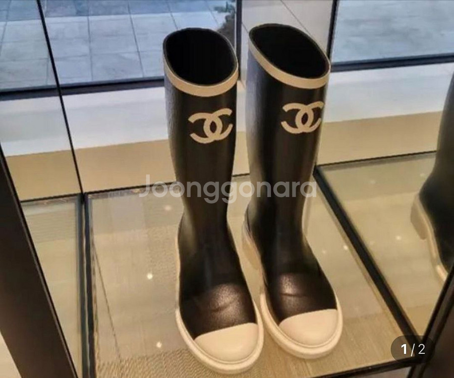 샤넬 26C 크루즈 CC 로고 러버 투톤 레인부츠 36