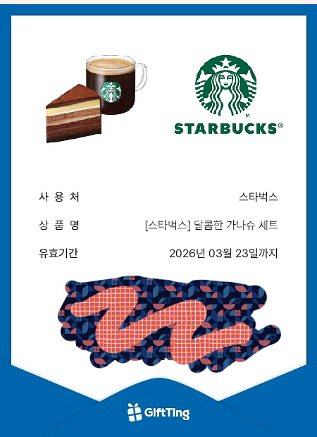 2026년 3월 23일까지 사용 가능한 달콤한 가나슈 세트 기프트티켓이에요.