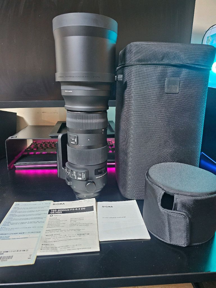시그마 150-600mm F5-6.3 DG OS HSM S 캐논 마운트 렌즈 판매합니다 구매후 테스트촬영 한두번이 전부 입니다. 미국에서 구매하였으며 BW필터 끼워서 사용하였습니다. 박스도 있지만 오염이 심해서 사진은 안올렸어요. 같이 드려요. 그리고 후드 결속 자국 몇군데 있습니다.