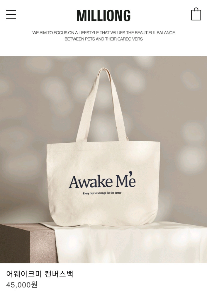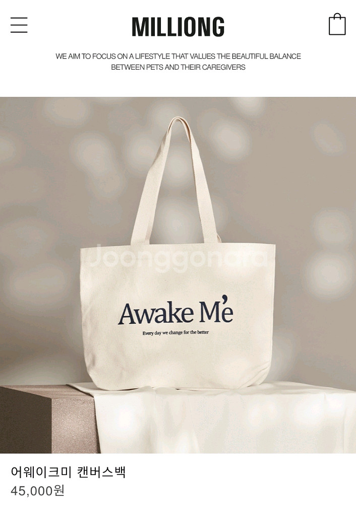개인정보(거래정보)를 주고받는 행위는 사기에 노출될 수 있으므로 즉시 중고나라로 신고해 주세요MILLIONG AWAKE ME 캔버스백 미개봉 새상품 산책가방으로 사용하기 좋아요! 45000원 > 3만원 🖤 GS 반값택배비 포함 가격 🖤 교환 환불 불가 🖤 예민하신 분은 패스