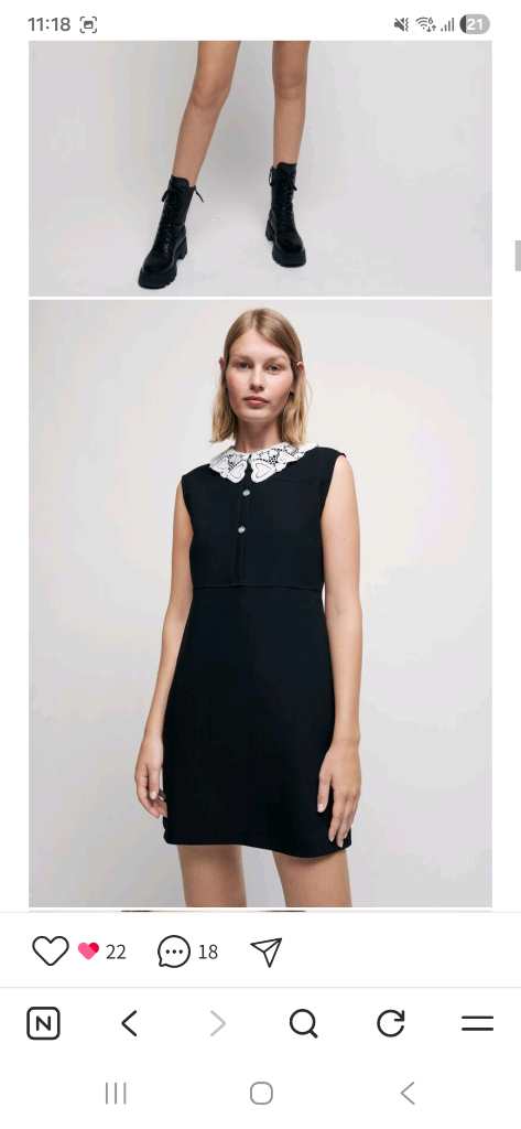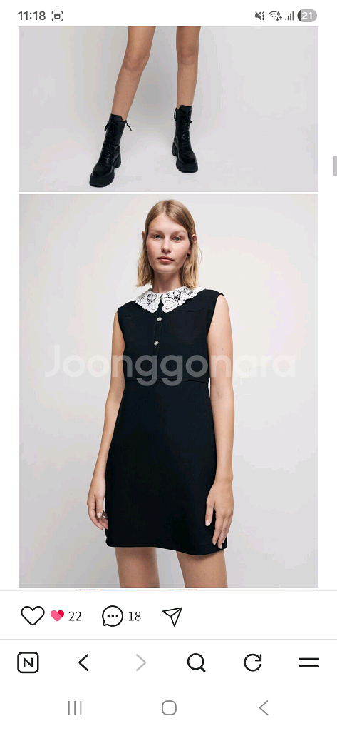 23년 구매 마쥬 블랙 원피스입니다 화이트 레이스 카라가 포인트로 달려있어 단정하면서도 귀여운 느낌을 줍니다 옆에 주머니도 있어요^^ 잠시 55 사이즈 스쳐지나갈때 마구 샀었는데 요요현상으로 이건 입지도 못한거 같아요 기억도 안나요 ㅜㅜ