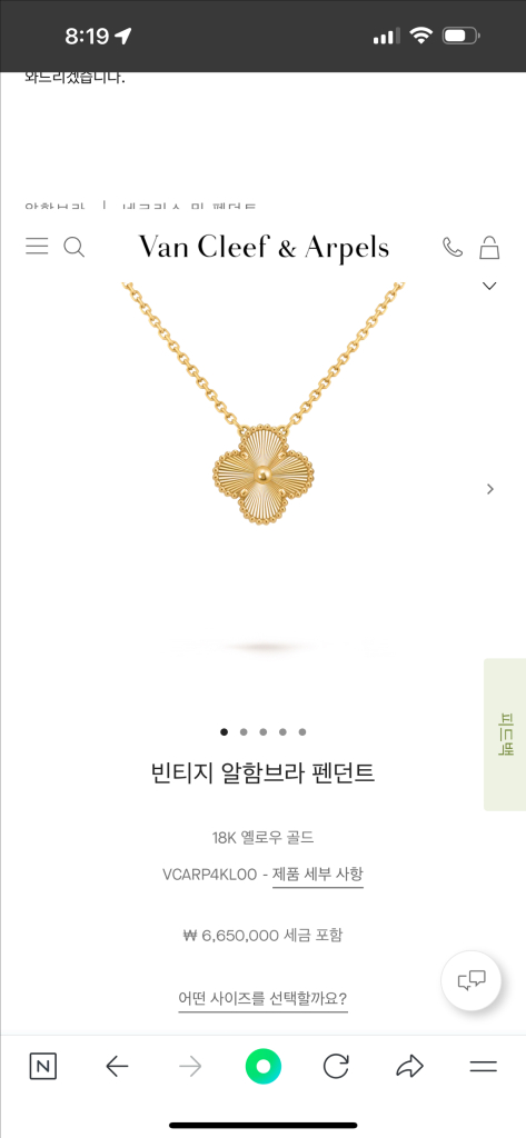 반클리프 앤 아펠 기요세 새상품 풀셋 입니다 잠실 에비뉴엘 반클리프매장구입