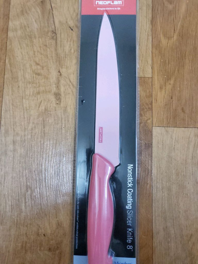 새상품 8인치 비닐 블레이더 나이프예요! 핑크색 손잡이가 예쁘고 논스틱 코팅으로 사용하기 편해요. 포장 그대로 미개봉 새제품입니다.
