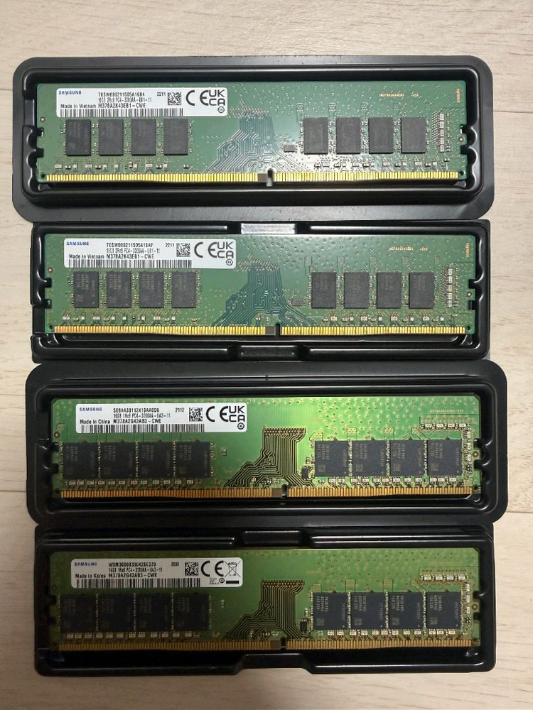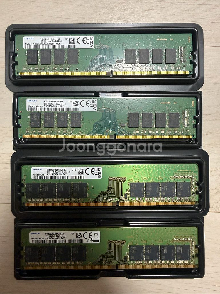 삼성 DDR4-3200 16GB 4개 판매합니다! 개당 15만원 입니다! 메모리 케이스에 넣어서 보관중입니다. 사용도 거의 안한 새제품급입니다! 네고는 어렵구요! 직거래는 경기 성남이나 용인 수지에서 진행합니다.