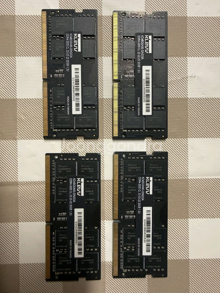 에센코어 DDR4-3200 32GB 4개 판매합니다. 동일주차 입니다. 가격은 개당 25만원 입니다 SK하이닉스 칩들어갔으며 인식률도 좋고 아이맥에도 바로 인식가능합니다. 네고는 어렵구요! 직거래는 경기 성남이나 용인 수지에서 진행합니다.