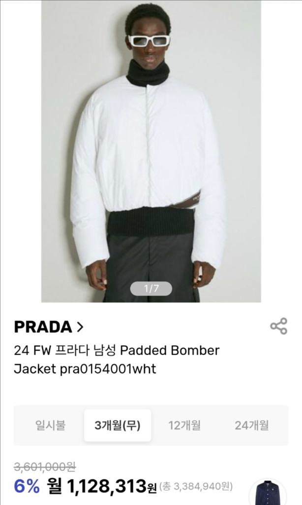 (새상품)프라다 남성 봄버 패딩자켓(M)