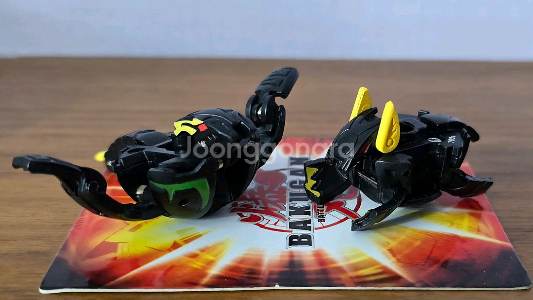 바쿠간 다크온 스카이&가이아 드래고노이드입니다. 변신 잘 되고 전체적으로 상태 매우 좋습니다. 팝아웃 시 분리되면서 두 개의 바쿠간이 되는 기믹이 있습니다. 사진 속 왼쪽이 스카이, 오른쪽이 가이아 드래고노이드입니다.