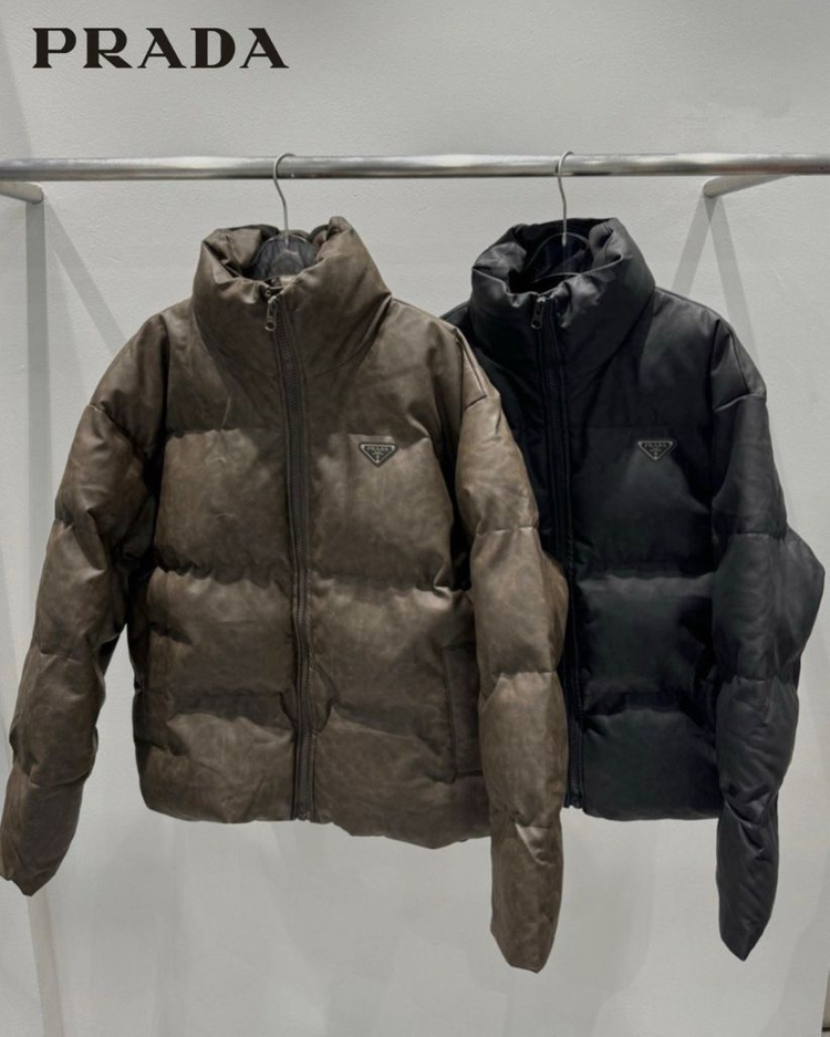 프라다 플레이트 스포 레더 패딩