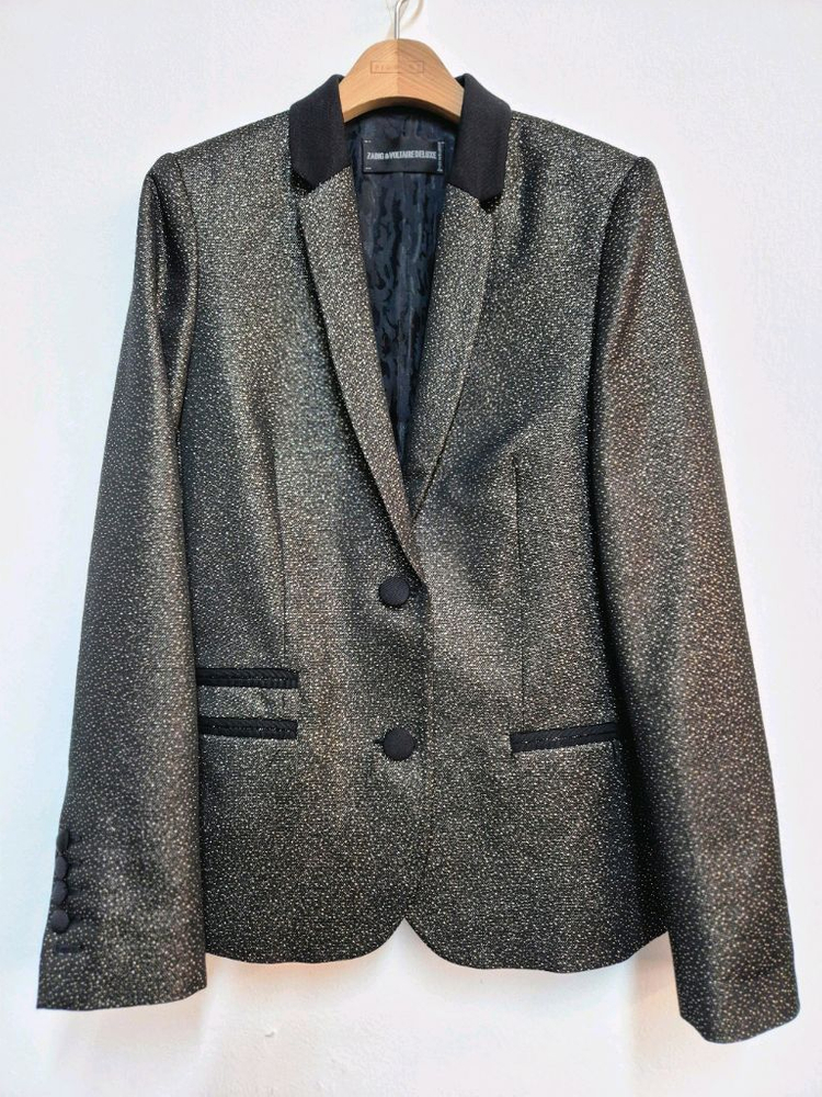 자딕앤볼테르 금사 트위드 여성 자켓 34사이즈입니다. 금사가 섞여있어 은은하게 반짝거리는 트위드 소재가 고급스러워요. 블랙 색상으로 트리밍 되어있어 세련된 느낌을 줍니다. 가단 43/ 총장 61cm 정 55 사이즈 적합합니다. 컨디션 아주아주 좋습니다. 새제품 급. 별도 문의 없으시면 바로 안전결제 부탁드려요!
