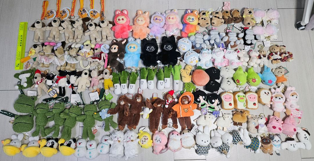 모두 새상품이며, 대체적으로 택도 달려있습니다:) 각키링의 사이즈는 대체적으로 10cm~20cm 사이이며 총 수량 117개입니다. 인형으로 일괄 49만원에 판매합니다🥹 낱개로 구매 가능하며, 개당 5500원으로 판매합니다. 뽑기인형 매입하시는 분들 환영입니다. 라부부인형도 있습니다.