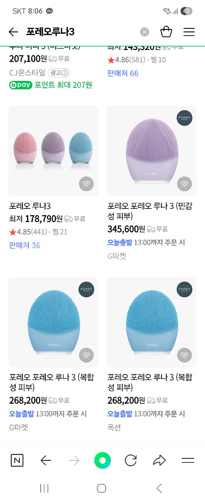 1. 포레오루나 3 세정기기 새거 - 15 2. 강남글로우 갈바닉기기 와 토너 및 세럼 - 11 안산 직거래(택배비별도예요)