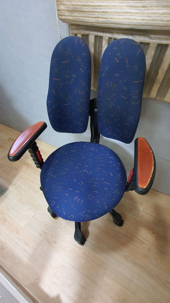 듀오백 파란색 패브릭 의자입니다. - 편안한 착석감을 제공합니다 - 파란색 패브릭 재질입니다 사용감은 있지만, 기능에는 문제 없습니다.