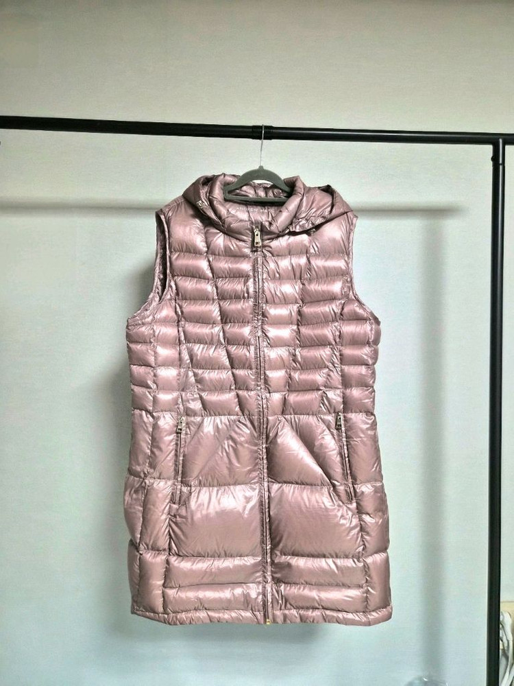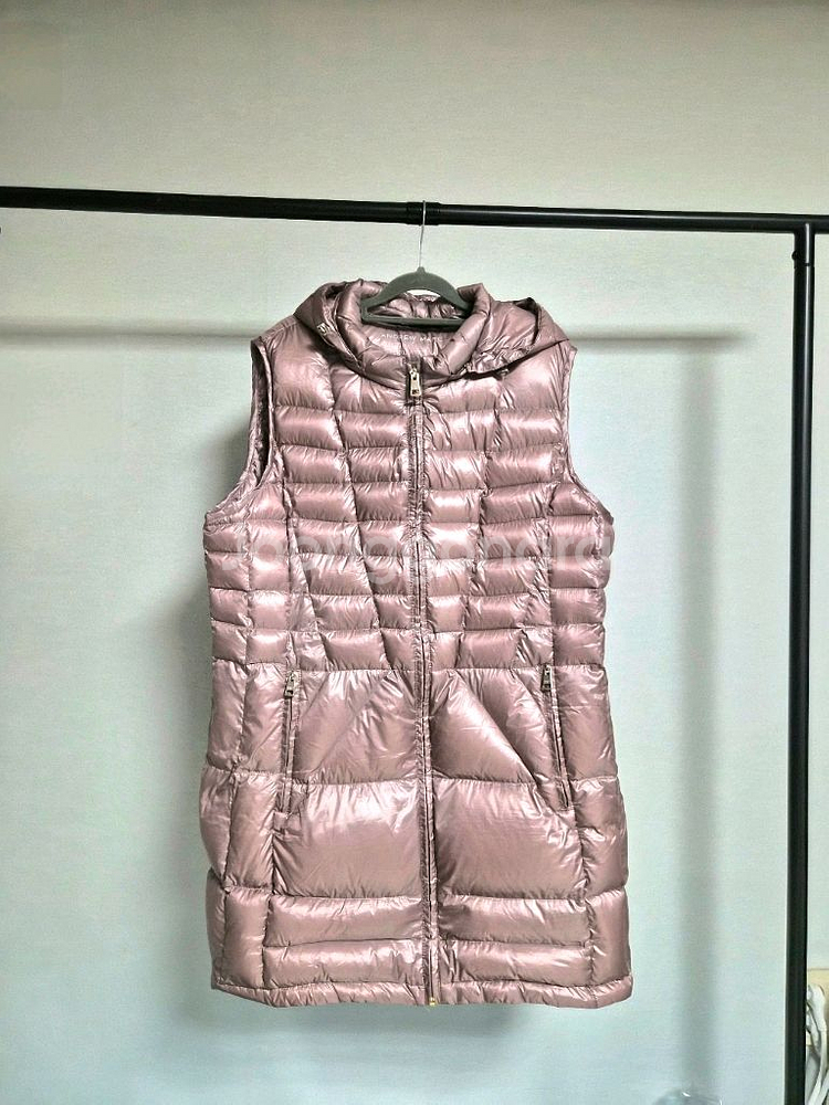 앤드류 마크 여성 경량 패딩 조끼 XXL/TTG 사이즈입니다 색상은 연한 샴페인 핑크색으로 화사하고, 후드가 일체형으로 되어있어 실용적이에요 650 필파워 프리미엄 다운으로 엄청 가볍고 따뜻하며, 압축이 가능해서 휴대하기 편리합니다 전체적으로 깨끗하고 상태 좋습니다 구매가 20만원대 실착횟수 5회미만 총장 80 가슴반품 58 88사이즈...한국사이즈 택비3천원 *5만원이상 구매시 택배비 무료 *다른 옷들도 많아요 구경오세요~ *상세사이즈 확인바랍니다 *중고거래 특징상 교환,환불 불가함을 양해바랍니다 *의류 대부분 세탁해서 보관중이라 바로 착용가능하세요 *빛반사로 컬러가 얼룩져나올수있지만 컨디션 정상입니다