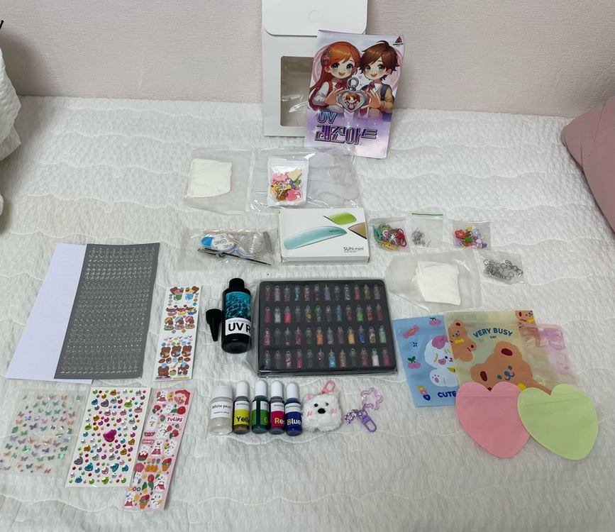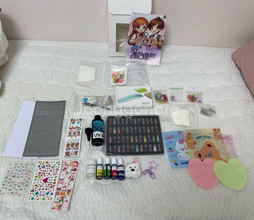 개인정보(거래정보)를 주고받는 행위는 사기에 노출될 수 있으므로 즉시 중고나라로 신고해 주세요UV 레진아트 세트 (새상품) 10만원 이상의 구성이 들어있어요. 일반택배3천원, 세븐일레븐편의점택배2천원 직거래 가능 택배보낸후 운송장번호 전송,교환환불불가