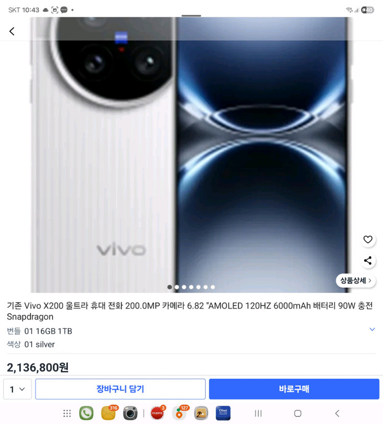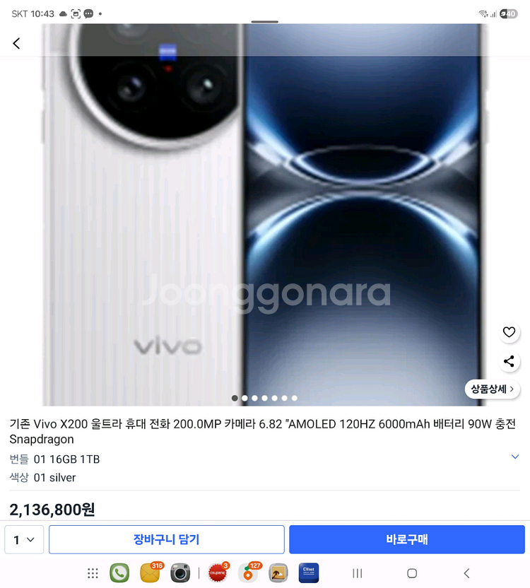 VIVO X200 Ultra 스마트폰과 망원 부스터 렌즈 키트 세트 풀박스 입니다 (전용 스트랩미사용) VIVO X200 Ultra는 200MP 카메라를 탑재하여 놀라운 디테일의 사진 촬영이 가능하며, 6.82인치 AMOLED 120Hz 디스플레이로 부드럽고 선명한 화면을 제공합니다 6000mAh 대용량 배터리와 90W 고속 충전을 지원하여 오랜 시간 사용해도 배터리 걱정 없이 빠르게 충전할 수 있습니다. 스냅드래곤 프로세서가 탑재되어 강력한 성능을 자랑합니다 16기가램 미러리스급 사진으로 유명한 그제품입니다. 샤오미울트라 사진보다 압승 렌즈킷포함 160입니다. 마지막사진 3장에 케이스에 살짝금, 마운트 및 망원렌즈에 살짝기스 있는것 사진에 있습니다. 폰은 아주 깨끗합니다. 1인치 렌즈 제대로된 전문사진기급 사진과 폰속도도 넘사벽입니다.(폴드7 사용자로써 비교시 훨씬빠름) 가장비싼 16기가램 1테라 모델입니다. 폰만 새제품 최저가 210만 한글 및 구글플레이 지원합니다 리뷰 https://youtube.com/shorts/t4MkHPFwF3A?si=JxuettW2r-uwENtj https://youtu.be/EPLg-wr9RL4?si=z-8YqiALnIcoJs4J