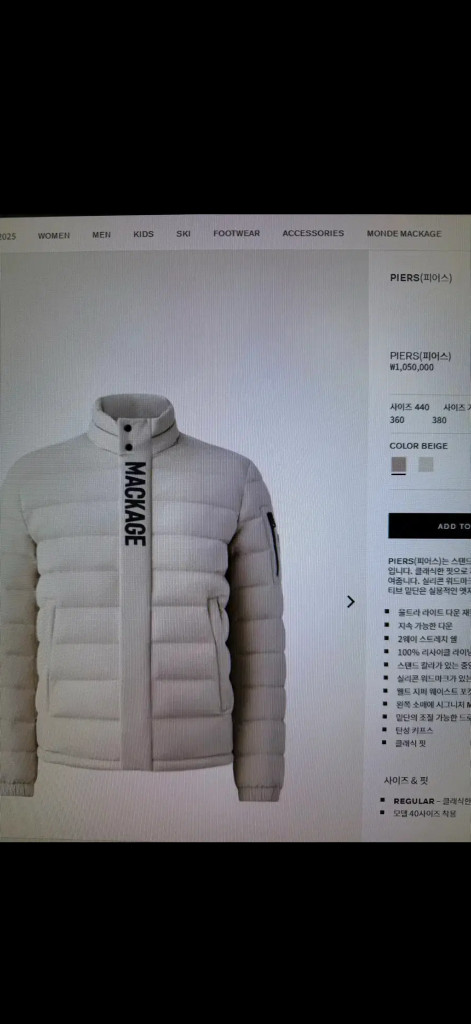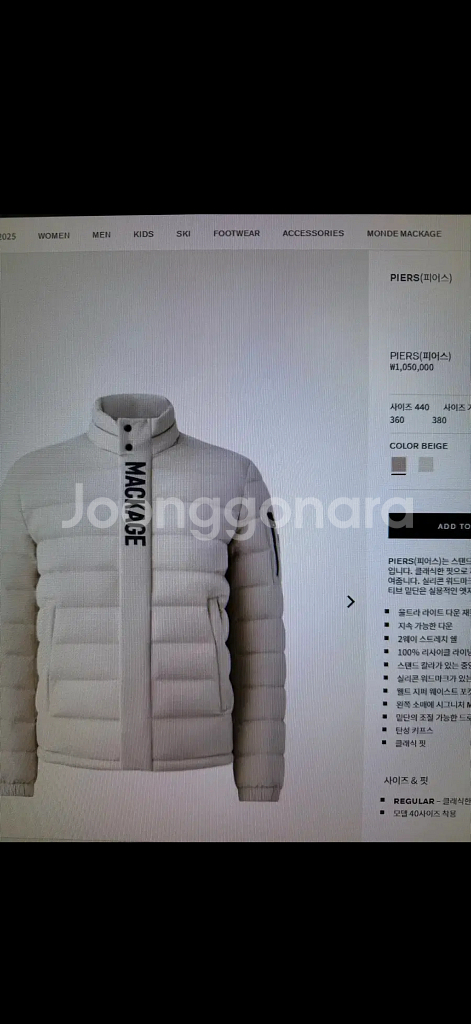 맥케이지 피어스 경량패딩 44사이즈(100)
