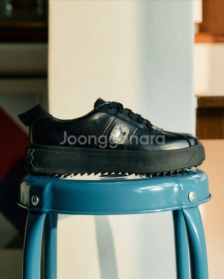 큐빅 보석 장식이 포인트, 플랫폼 디자인으로 키높이 효과, 전체적으로 깔끔한 블랙 색상입니다 특히 뒷꿈치 부분을 보호하는 염소가죽과 스퀘어 토 디자인으로 고급스러우면서도 무드있는 캐주얼하면서도 세련된 느낌을 줍니다 착용감은 푹신하고 다양하게 활용하기 좋은 신발입니다 (소재 소가죽)