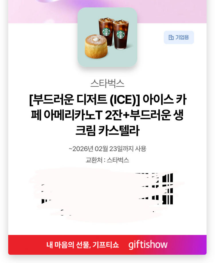 스타벅스] 아메리카노T2잔+생크림카스텔라 쿠폰
