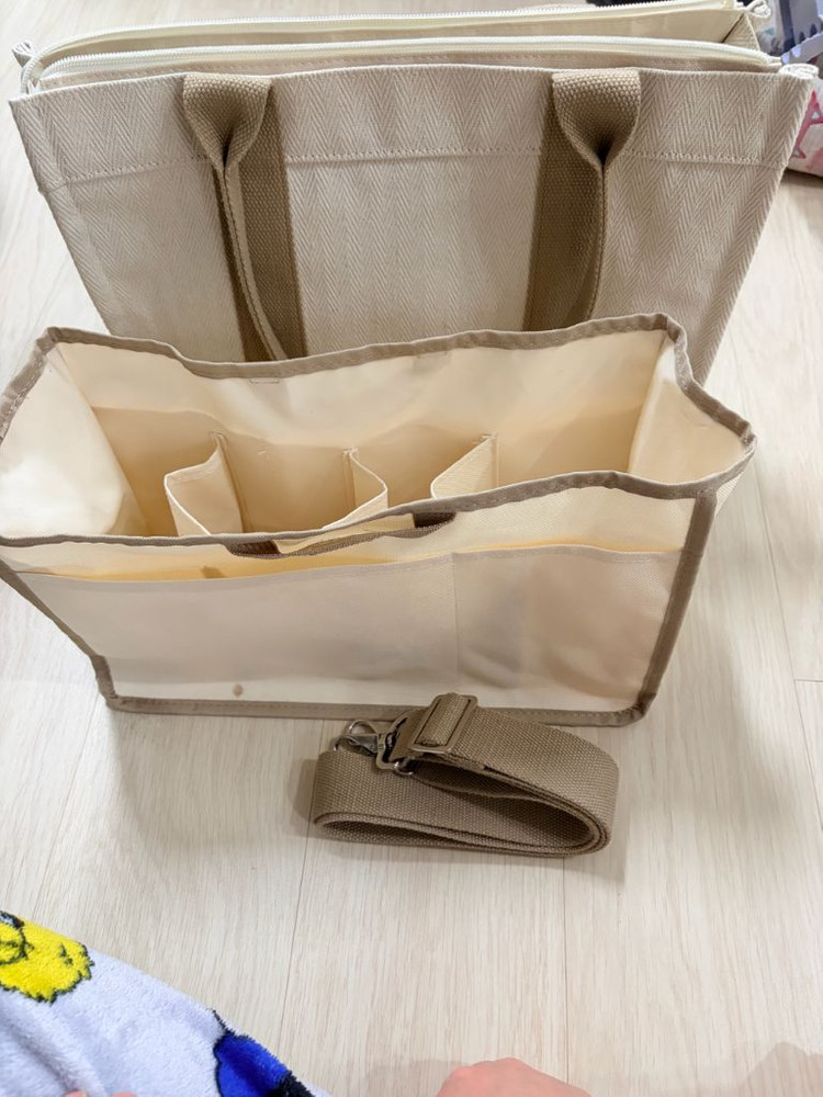 수유가방과 수유용품 보관함이 포함된 세트예요. 내부 칸막이와 어깨끈까지 있어서 실용적이고, 전체적으로 깔끔한 상태입니다. 예민사절 내고 가능