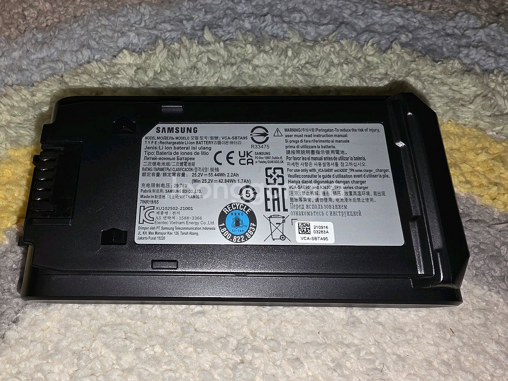 삼성 비스포크 제트 청소기 배터리 VCA-SBTA95 판매합니다 29.7V, 2.2Ah (42.84Wh) 용량의 리튬 이온 배터리입니다 무게는 1.7kg으로 청소기 사용 시 안정적인 무게감을 제공합니다 사진에서 보시는 것처럼 전체적으로 깨끗하고 사용감이 적습니다 비스포크 무선청소기용 초강력 배터리입니다. 충전만 딱 한 번 하고 사용하지 않은 새제품입니다. 삼성 정품 가격 최소 18만원 이상이고, 리필가격도 방전 배터리팩 보내줘야 최소 7만원입니다. 비스포크 청소기 사용하시는 분들은 여분으로 구매하셔서 돌려쓰시면 배터리 수명에 도움됩니다. 새것 같은 정품 배터리 미리 장만하시기 바랍니다. 직거래 우선이고 협의 후 택배 거래 가능합니다.