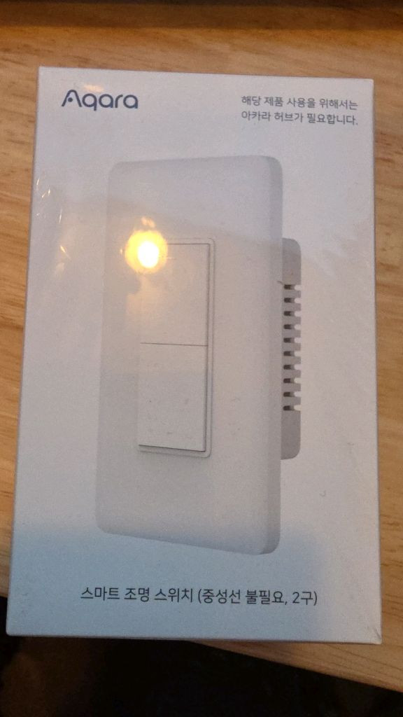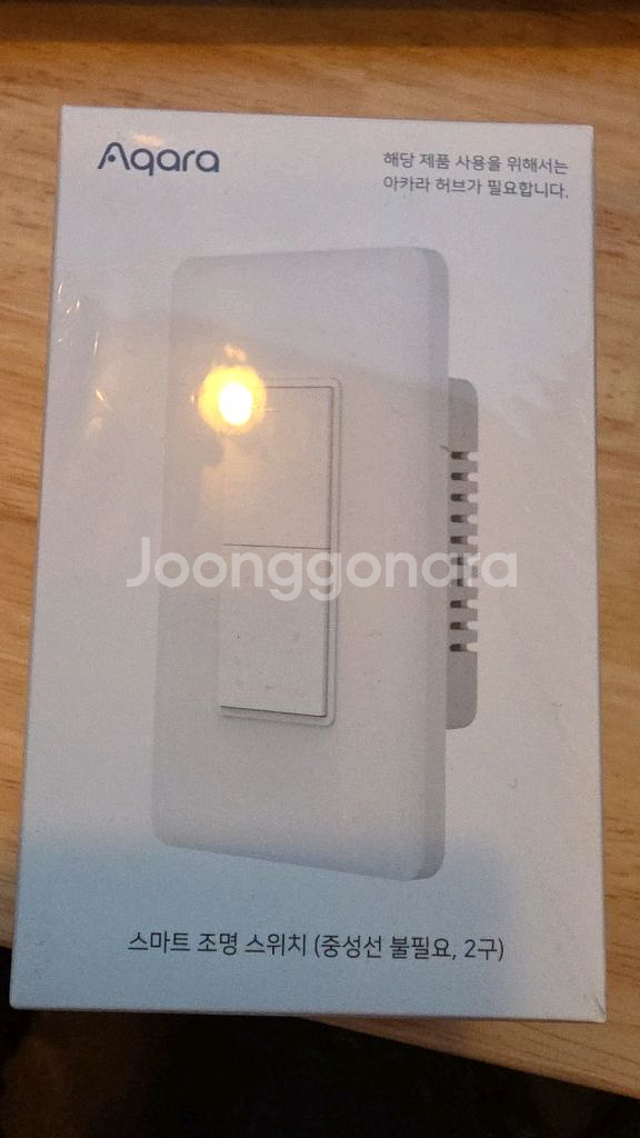 아카라 스마트 조명 스위치 2구 모델이에요. 박스 상태로 새 제품이고, 스마트홈 구축하시는 분께 필수품입니다. 2개 있습니다. 일괄 구매 시 60,000원에 드립니다. (택배비 불포함)