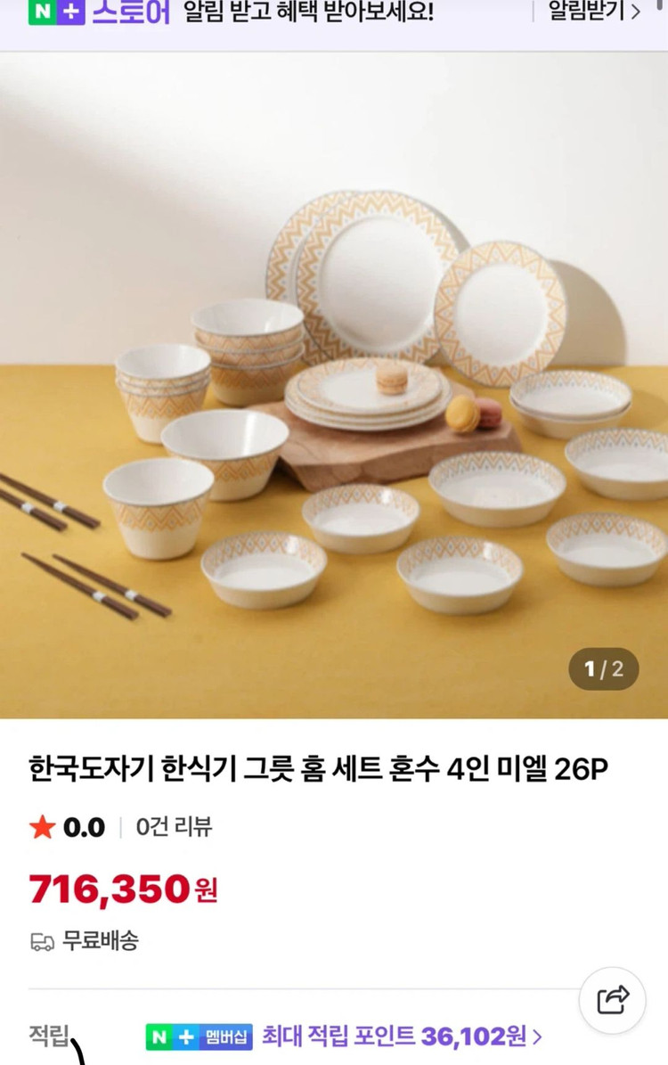 한국도자기 미엘 4인 홈세트 26P 새제품입니다 공기 4P, 대접 4P, 접시 6P (21.5cm 2P, 19.5cm 2P, 16.8cm 2P), 찬기 8P (14.2cm 4P, 17cm 4P), 나무젓가락 4벌로 구성되어 있습니다 LG전자 사은품으로 받았는데, 그릇이 이미 많아서 내 놓아요. 새 제품으로 사용감이 전혀 없는 깨끗한 상태입니다.