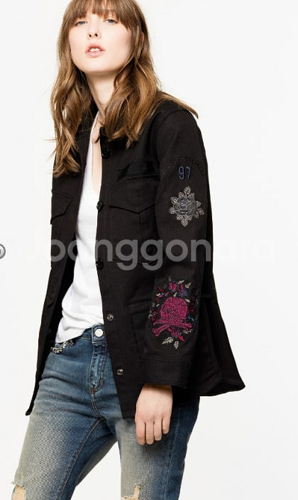 가슴 51 기장 71 XS 사이즈 쟈딕앤볼테르 정품 블랙 야상 자켓입니다. 팔 부분 해골과 꽃 자수 디테일이 유니크합니다. 블랙 색상이라 어느 옷에도 잘 어울려서 편하게 입기 좋아요 깨끗한상태입니다 :)