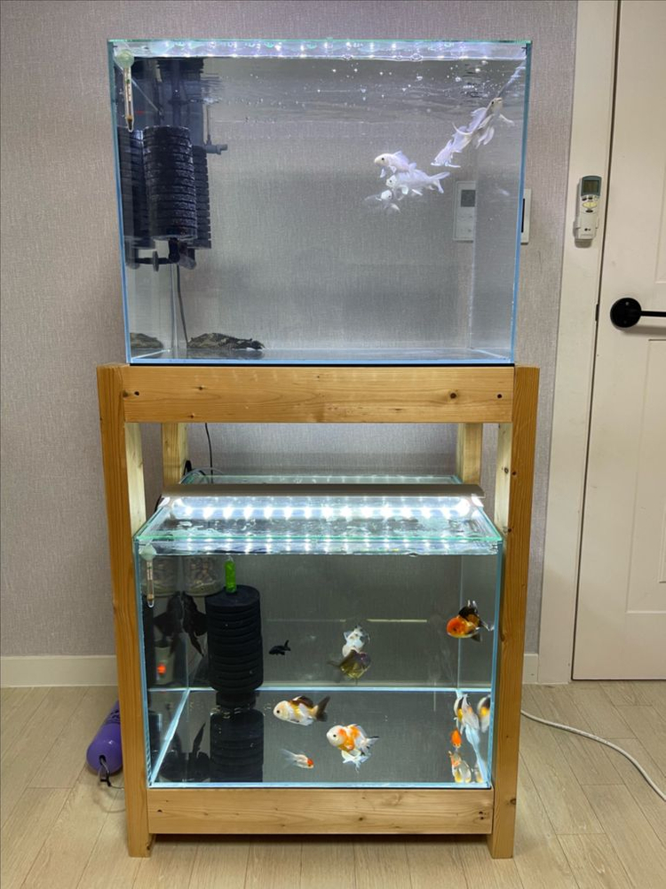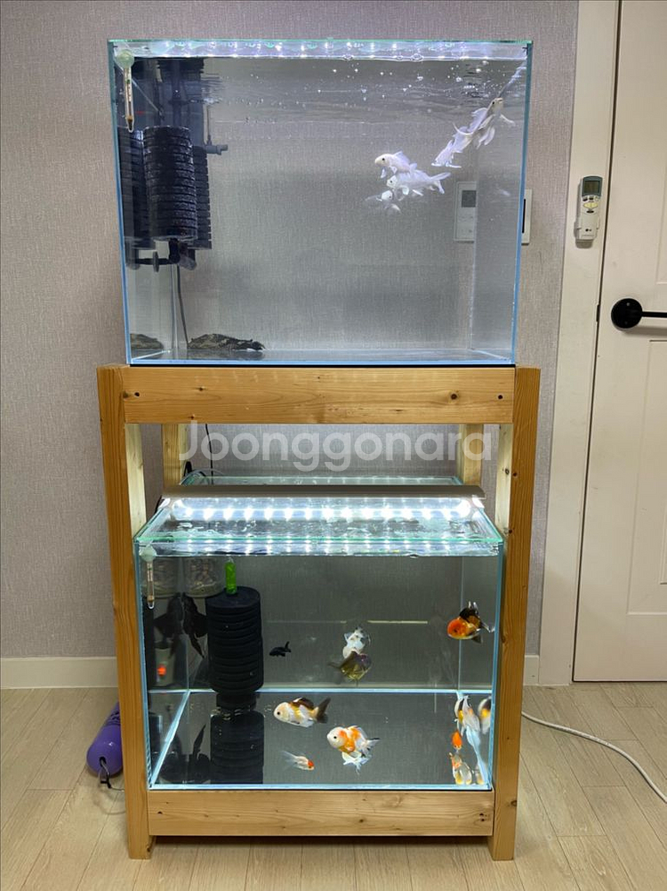 2단 어항 축양장 풀세트 판매합니다 - 금붕어 오란다와 버터플라이 코이 잉어를 키웠어요. - 전체적으로 깨끗하게 관리했습니다. 😍 사진의 수조는 참고 컷 입니다. (생물 제외) - 켈란어항 2자 광폭 (60x45cm, 6T) - 어항 두 개와 나무 받침대, LED 조명 개별 판매 합니다. 상태 S급 (실사용 1개월) 2자 광폭 아래 위로 2개 들어 갈수 있습니다. 구매 후 1개월 정도 사용 사진의 수조는 참고 컷 입니다. 2자 광폭 수조 4만5천원 (개별 가능) 2자 광폭 뚜껑 2만원 (개별 가능) 2자 광폭 조명 3만원 (개별 가능) 2자 광폭 히터 1만원 (개별 가능) 2자 광폭 축양장 69X46X88 12만원 (개별 가능) 2자 광폭 수조 1개 + 뚜껑 1개 + 조명 1개 + 축양장세트 구매시 20만원 (1만5천원 할인) 2자 광폭 수조 2개 + 뚜껑 2개 + 조명 2개 + 히터 2개 축양장 세트 구매시 30 만원 (3만원 할인) 세척 되있고 안전하게 이동하시어 그대로 사용 하시면 됩니다.^^ 선입금시 문 앞 비대면도 가능 합니다. 수조 깔끔하게 쓰는 성격 입니다.