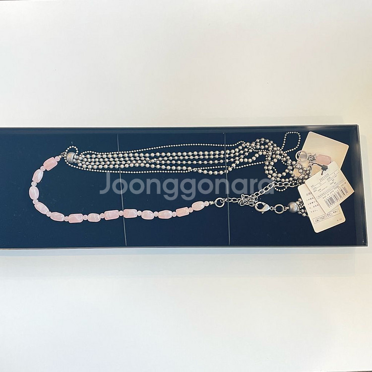 일본판 랑방 컬렉션 디자인입니다. 은색 볼체인(황동소재)과 천연석인 로즈쿼츠가 레이어드 되어있어 화사합니다. 길이가 길어 두번 감아 짧게 스타일링 하셔도 되고, 허리벨트로 사용 가능합니다. ・택달린 새상품 ・정가 약 34만원 ・가로길이: 약 95cm 100% 정품입니다. 가품,정품 문의는 따로 받지 않아요. 양해 부탁드립니다.