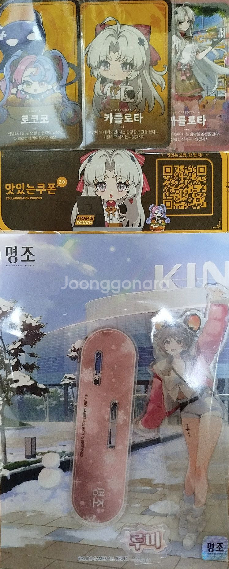 명조 띵조월드 in AGF 루미 아크릴 스탠드 미개봉 입니다 맘스터치 쿠폰, 카를로타 LD 포토 카드, 카를로타 SD 포토 카드, 로코코 SD 포토 카드 같이 보내드립니다