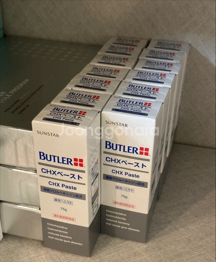 선스타 버틀러 CHX 페이스트 75g입니다 임플란트 하면서 잇몸에 좋은 일본 치약으로 유명해서 직구해서 썼는 데, 너무 많아서 판매해요! 개당 10000원입니다 직거래 선릉역, 택배 거래시 택배비 별도