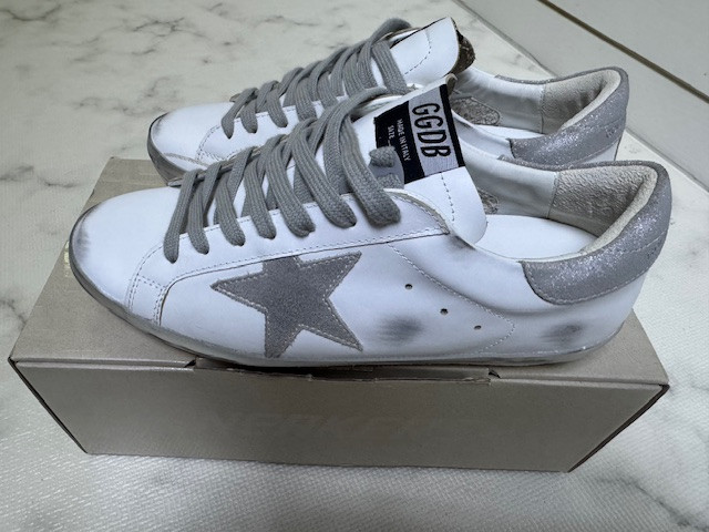 골든구스 슈퍼스타 실버 탭 실버 스파클 판매합니다. 구매 후 실착만 했습니다. 비브람 밑창 보강 했으며, 무신사에서 구매 했습니다. 인천 효성동에서 직거래 합니다. 사이즈는 41입니다.